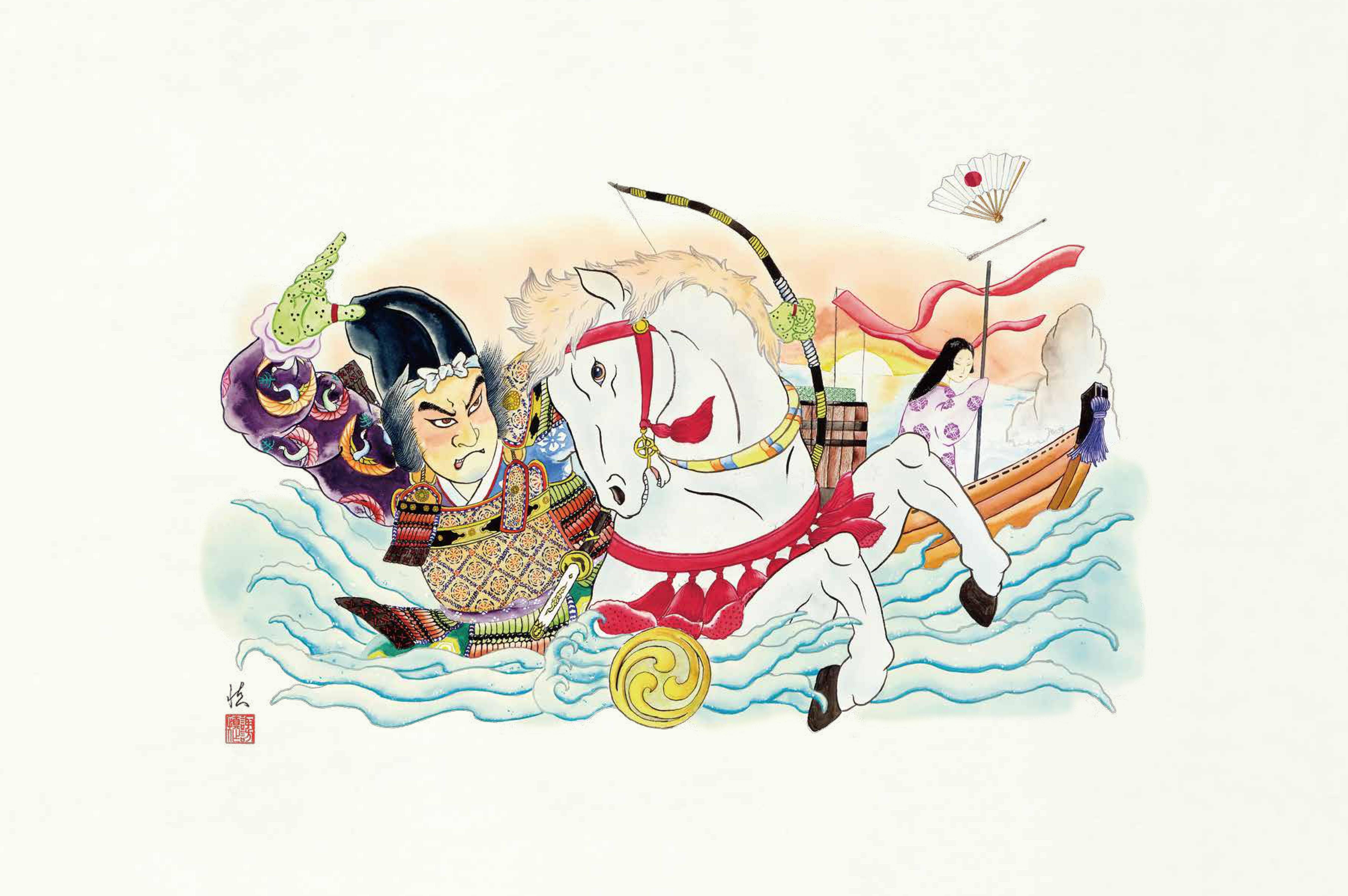 那須与一の名を一躍有名にしました。弓の腕前だけでなく、勇気と冷静さをも示したこの場面は源平合戦